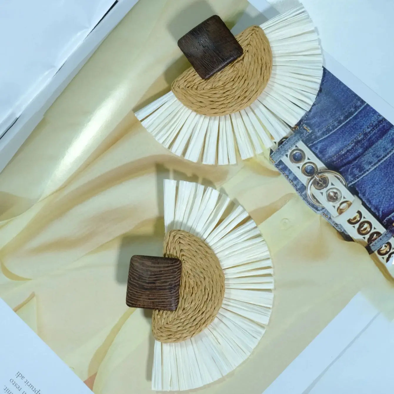 Rattan Raffia Tassel Pendant Earrings